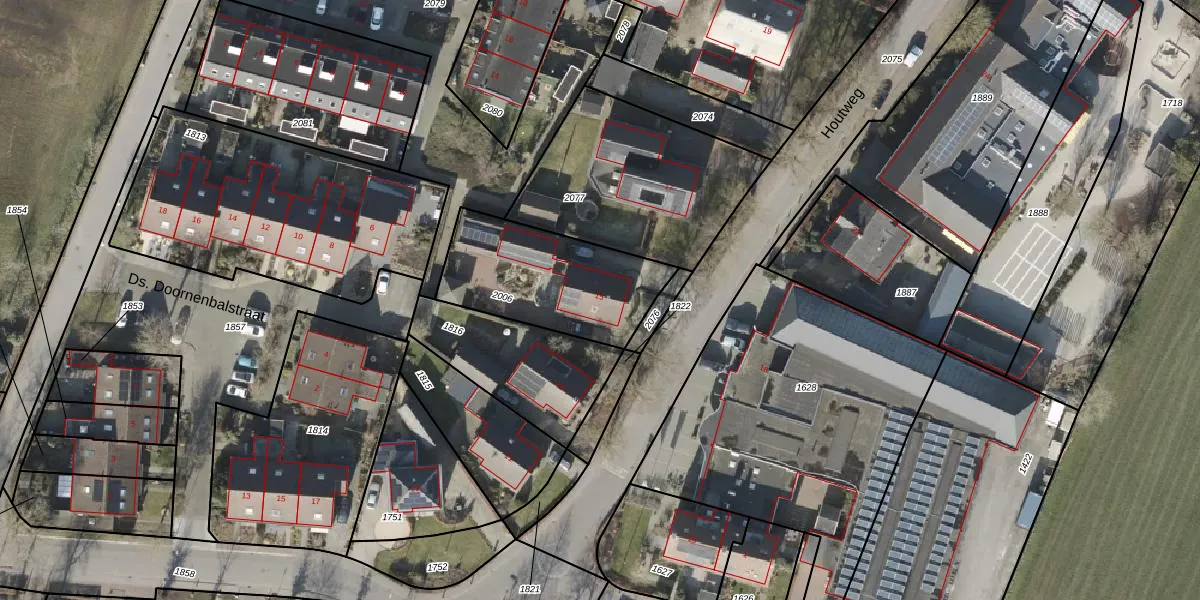 Het perceel waarop Houtweg 15 staat heeft een oppervlakte van 550 m². Dit is een groot perceel. De perceeloppervlakte wordt geregistreerd door het Kadaster. Gedetailleerde informatie over de maten van dit perceel kunt u vinden in het rapport Kadastrale kaart met maatvoering van Houtweg 15.
