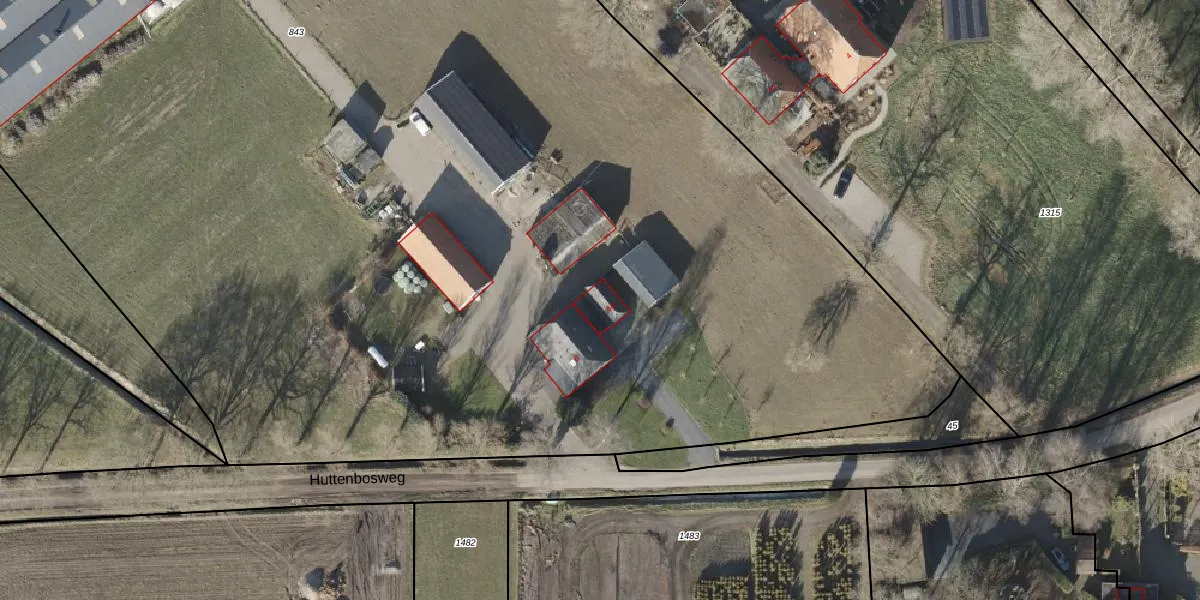 Het perceel waarop Huttenbosweg 6-A staat heeft een oppervlakte van 1,6 ha. Dit is een zeer groot perceel. De perceeloppervlakte wordt geregistreerd door het Kadaster. Gedetailleerde informatie over de maten van dit perceel kunt u vinden in het rapport Kadastrale kaart met maatvoering van Huttenbosweg 6-A.