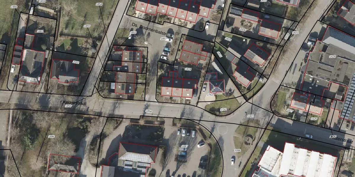 Het perceel waarop Keizerstraat 15 staat heeft een oppervlakte van 865 m². Dit is een groot perceel. De perceeloppervlakte wordt geregistreerd door het Kadaster. Gedetailleerde informatie over de maten van dit perceel kunt u vinden in het rapport Kadastrale kaart met maatvoering van Keizerstraat 15.