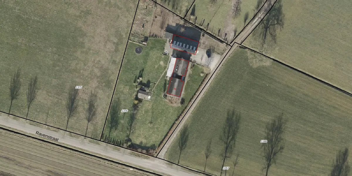 Het perceel waarop Ravenstraat 41 staat heeft een oppervlakte van 3725 m². Dit is een zeer groot perceel. De perceeloppervlakte wordt geregistreerd door het Kadaster. Gedetailleerde informatie over de maten van dit perceel kunt u vinden in het rapport Kadastrale kaart met maatvoering van Ravenstraat 41.