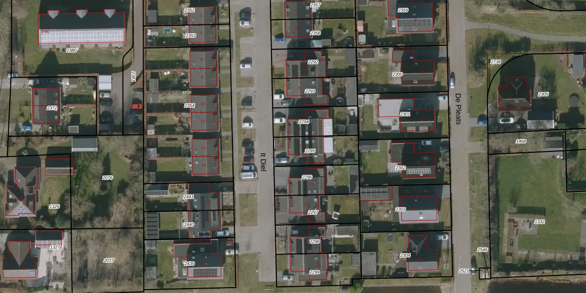 Het adres is gelegen op perceel 2295 in de sectie F en de kadastrale gemeente Giekerk. De kadastrale aanduiding is aldus GKK02-F-2295. Het perceel is kleiner dan gemiddeld in Giekerk. Het perceel is 290 m² groot, terwijl het gemiddelde ligt op 6129,75 m². Het grootste perceel in de kadastrale gemeente is 14,6 ha. Het kleinste perceel heeft een oppervlakte van 0 m². Dit is het enige adres dat aanwezig is op het perceel. De huidige grenzen van het perceel zijn digitaal in de Basisregistratie Kadaster (BRK) geregistreerd op 07-07-2010.