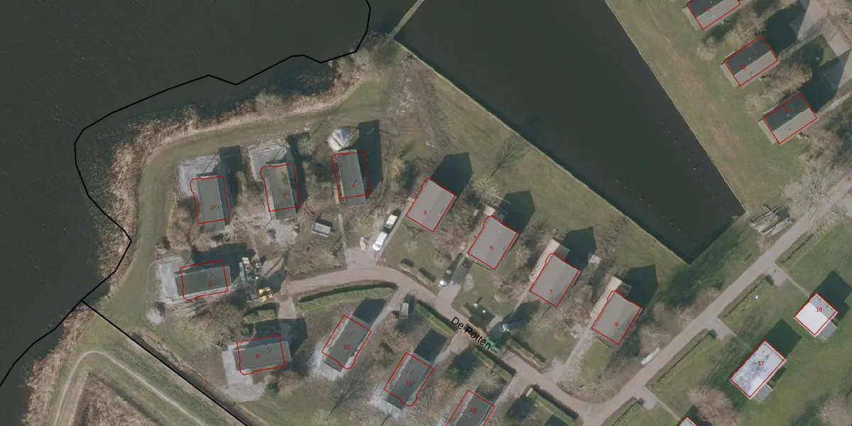 Het perceel waarop De Potten 5 staat heeft een oppervlakte van 8,1 ha. Dit is een zeer groot perceel. De perceeloppervlakte wordt geregistreerd door het Kadaster. Gedetailleerde informatie over de maten van dit perceel kunt u vinden in het rapport Kadastrale kaart met maatvoering van De Potten 5.