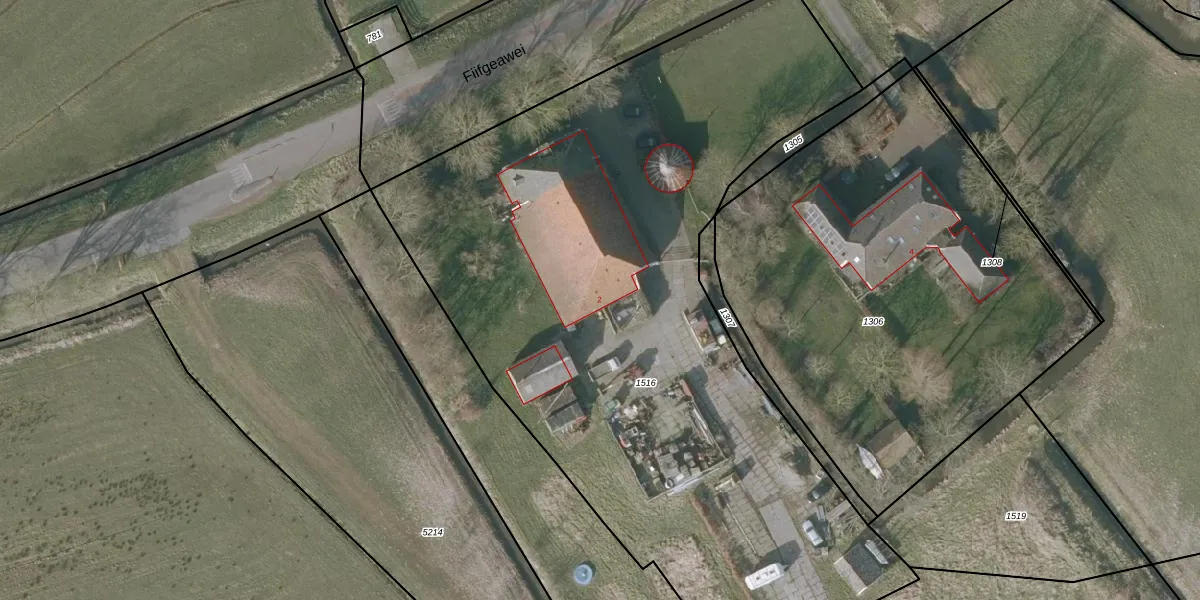 Het perceel waarop Fiifgeawei 2 staat heeft een oppervlakte van 4706 m². Dit is een zeer groot perceel. De perceeloppervlakte wordt geregistreerd door het Kadaster. Gedetailleerde informatie over de maten van dit perceel kunt u vinden in het rapport Kadastrale kaart met maatvoering van Fiifgeawei 2.