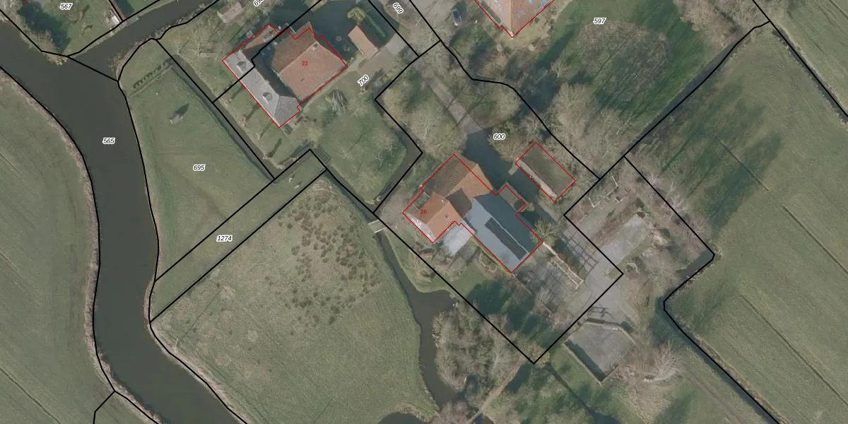 Het adres is gelegen op perceel 600 in de sectie F en de kadastrale gemeente Sneek. De kadastrale aanduiding is aldus SNE00-F-600. De oppervlakte van het perceel is 2440 m². Dat is groter dan gemiddeld in Sneek, waar de gemiddelde perceeloppervlakte op 2095,69 m² ligt. Het kleinste perceel in de kadastrale gemeente is 0 m² groot. De grootste perceeloppervlakte is 61,3 ha. Dit is het enige adres dat aanwezig is op het perceel. In de Basisregistratie Kadaster (BRK) werden de grenzen van het perceel geregistreerd op 18-09-2008.