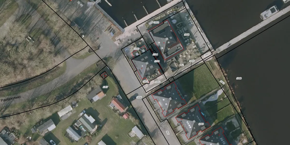 Paviljoenwei 4-001 is gelegen op kadastraal perceel SNE00F1651. Deze kadastrale aanduiding is uniek en wordt gebruikt door het Kadaster om eigendomsrechten en andere zakelijke rechten vast te leggen. Het perceel maakt onderdeel uit van de kadastrale gemeente Sneek.