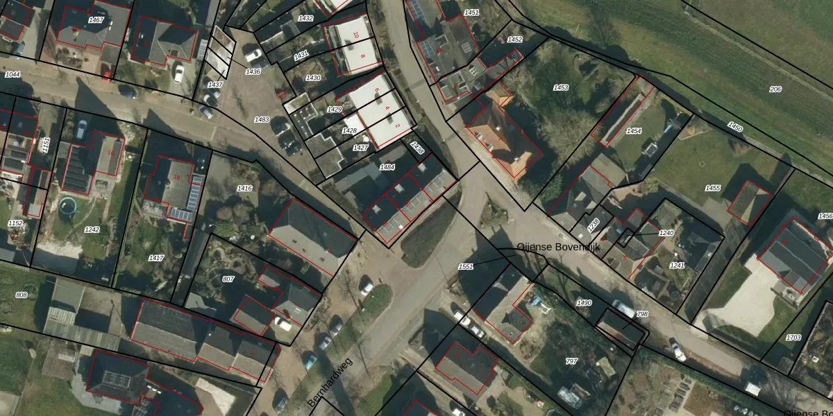 Bernhardweg 1-A is gelegen op kadastraal perceel OEN00D1484. Deze kadastrale aanduiding is uniek en wordt gebruikt door het Kadaster om eigendomsrechten en andere zakelijke rechten vast te leggen. Het perceel maakt onderdeel uit van de kadastrale gemeente Oijen.
