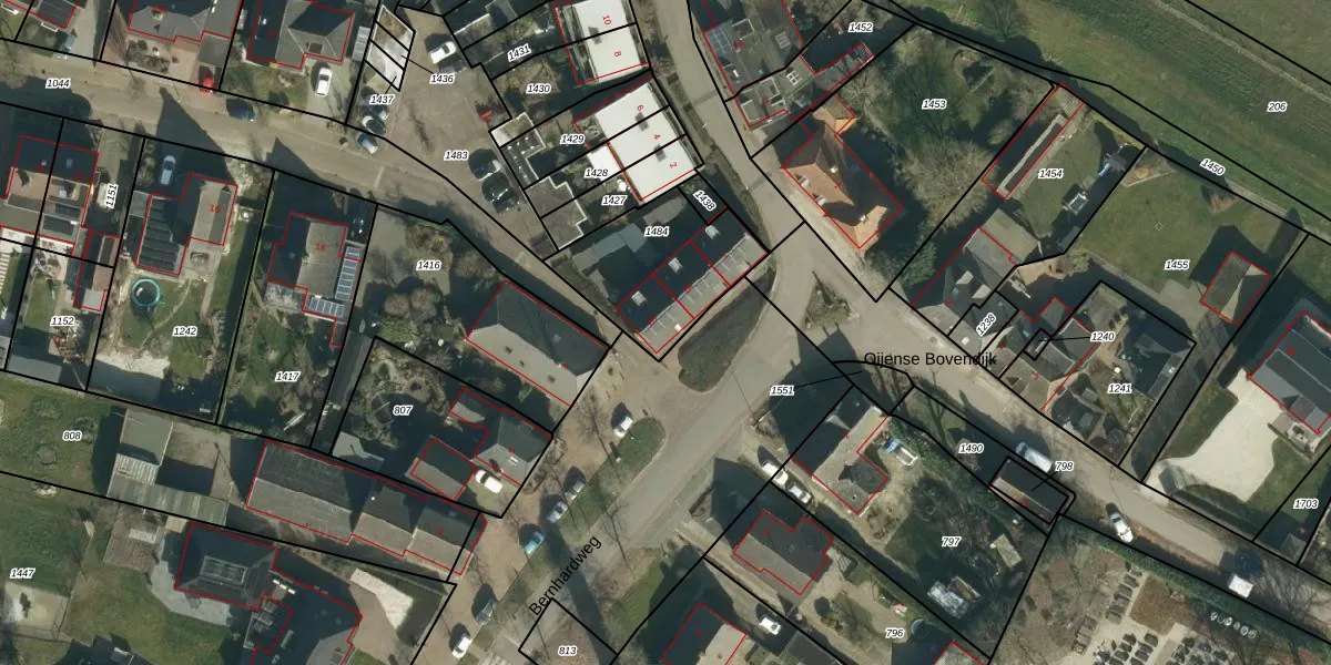 Bernhardweg 1-B is gelegen op kadastraal perceel OEN00D1484. Deze kadastrale aanduiding is uniek en wordt gebruikt door het Kadaster om eigendomsrechten en andere zakelijke rechten vast te leggen. Het perceel maakt onderdeel uit van de kadastrale gemeente Oijen.