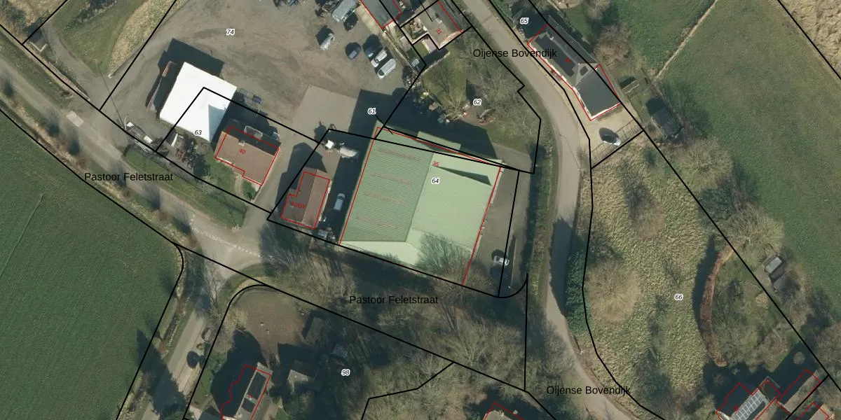 Het adres is gelegen op perceel 64 in de sectie F en de kadastrale gemeente Oijen. De kadastrale aanduiding is aldus OEN00-F-64. De gemiddelde perceelgrootte in Oijen is 8702,15 m². Dit perceel is kleiner: de perceeloppervlakte bedraagt 1450 m². De grootste perceeloppervlakte in de kadastrale gemeente is 25,9 ha. De kleinste oppervlakte bedraagt 0 m². Er zijn 2 adressen aanwezig op het perceel. De huidige grenzen van het perceel zijn digitaal in de Basisregistratie Kadaster (BRK) geregistreerd op 29-01-2007.