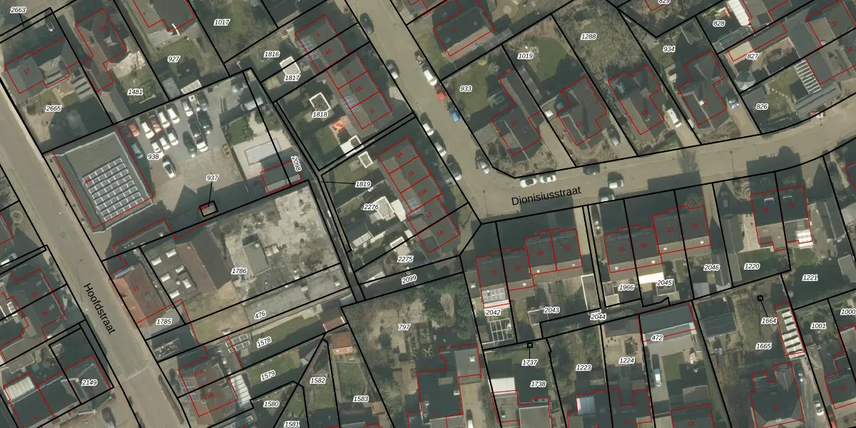 Het perceel waarop Dionisiusstraat 12 staat heeft een oppervlakte van 668 m². Dit is een groot perceel. De perceeloppervlakte wordt geregistreerd door het Kadaster. Gedetailleerde informatie over de maten van dit perceel kunt u vinden in het rapport Kadastrale kaart met maatvoering van Dionisiusstraat 12.