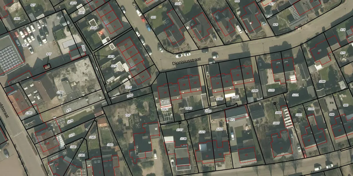 Het perceel waarop Dionisiusstraat 18 staat heeft een oppervlakte van 530 m². Dit is een groot perceel. De perceeloppervlakte wordt geregistreerd door het Kadaster. Gedetailleerde informatie over de maten van dit perceel kunt u vinden in het rapport Kadastrale kaart met maatvoering van Dionisiusstraat 18.