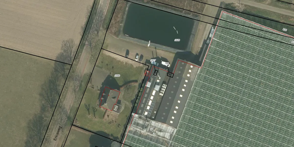 Het perceel waarop Ericaweg 5-A staat heeft een oppervlakte van 2,3 ha. Dit is een zeer groot perceel. De perceeloppervlakte wordt geregistreerd door het Kadaster. Gedetailleerde informatie over de maten van dit perceel kunt u vinden in het rapport Kadastrale kaart met maatvoering van Ericaweg 5-A.