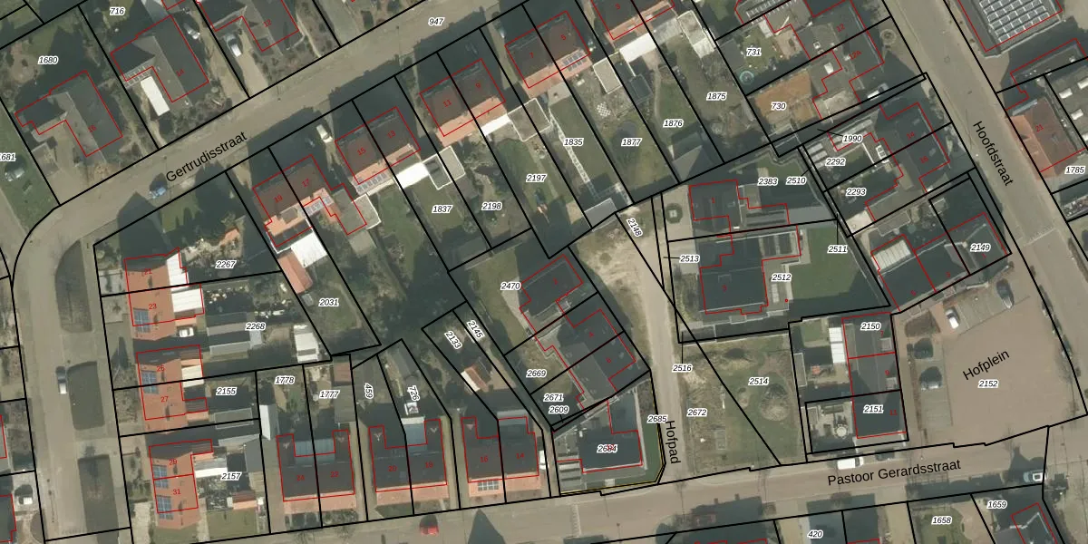 Gebruik de zoekbalk of klik op een perceel voor informatie over de adressen binnen dit perceel.