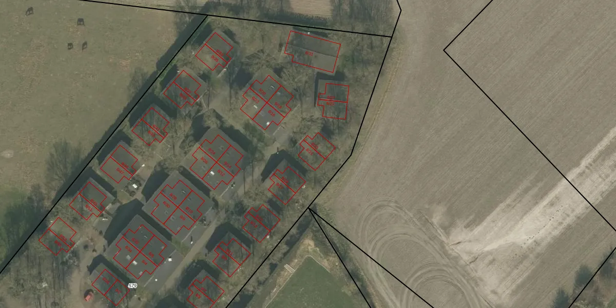 Het perceel waarop Koepas 8-21 staat heeft een oppervlakte van 1,3 ha. Dit is een zeer groot perceel. De perceeloppervlakte wordt geregistreerd door het Kadaster. Gedetailleerde informatie over de maten van dit perceel kunt u vinden in het rapport Kadastrale kaart met maatvoering van Koepas 8-21.