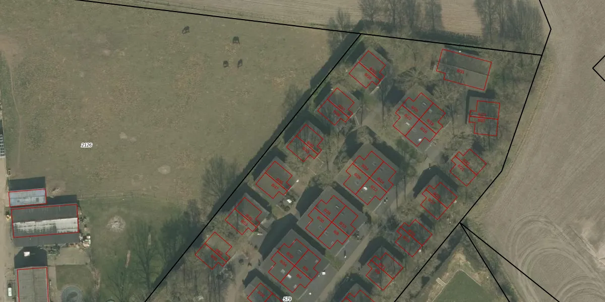 Het perceel waarop Koepas 8-43 staat heeft een oppervlakte van 1,3 ha. Dit is een zeer groot perceel. De perceeloppervlakte wordt geregistreerd door het Kadaster. Gedetailleerde informatie over de maten van dit perceel kunt u vinden in het rapport Kadastrale kaart met maatvoering van Koepas 8-43.