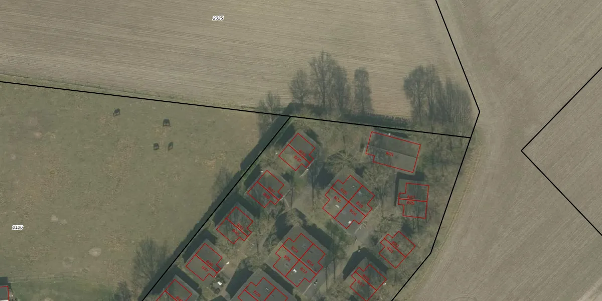 Het perceel waarop Koepas 8-33 staat heeft een oppervlakte van 1,3 ha. Dit is een zeer groot perceel. De perceeloppervlakte wordt geregistreerd door het Kadaster. Gedetailleerde informatie over de maten van dit perceel kunt u vinden in het rapport Kadastrale kaart met maatvoering van Koepas 8-33.
