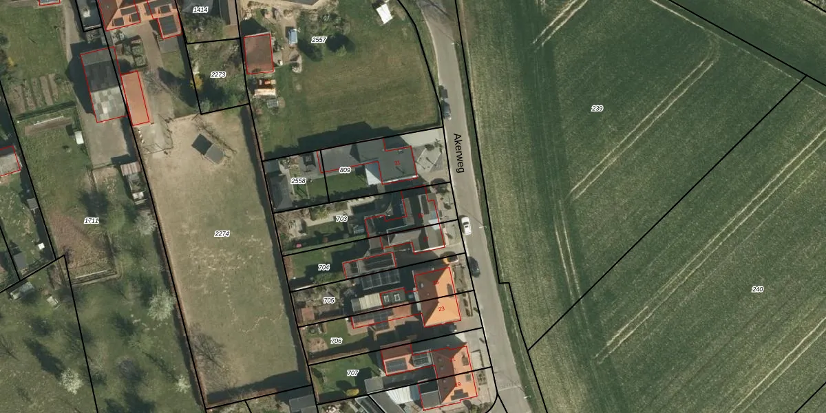 Akerweg 29 is gelegen op kadastraal perceel OBK00D703. Deze kadastrale aanduiding is uniek en wordt gebruikt door het Kadaster om eigendomsrechten en andere zakelijke rechten vast te leggen. Het perceel maakt onderdeel uit van de kadastrale gemeente Oirsbeek.