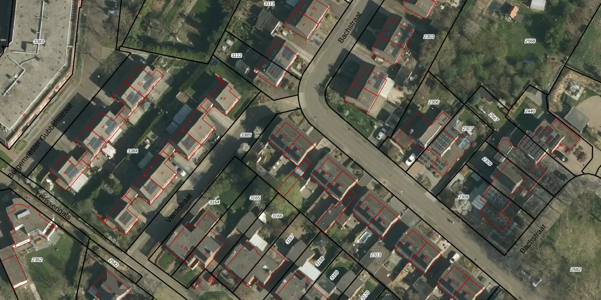 Het perceel waarop Bachstraat 12 staat heeft een oppervlakte van 2310 m². Dit is een zeer groot perceel. De perceeloppervlakte wordt geregistreerd door het Kadaster. Gedetailleerde informatie over de maten van dit perceel kunt u vinden in het rapport Kadastrale kaart met maatvoering van Bachstraat 12.