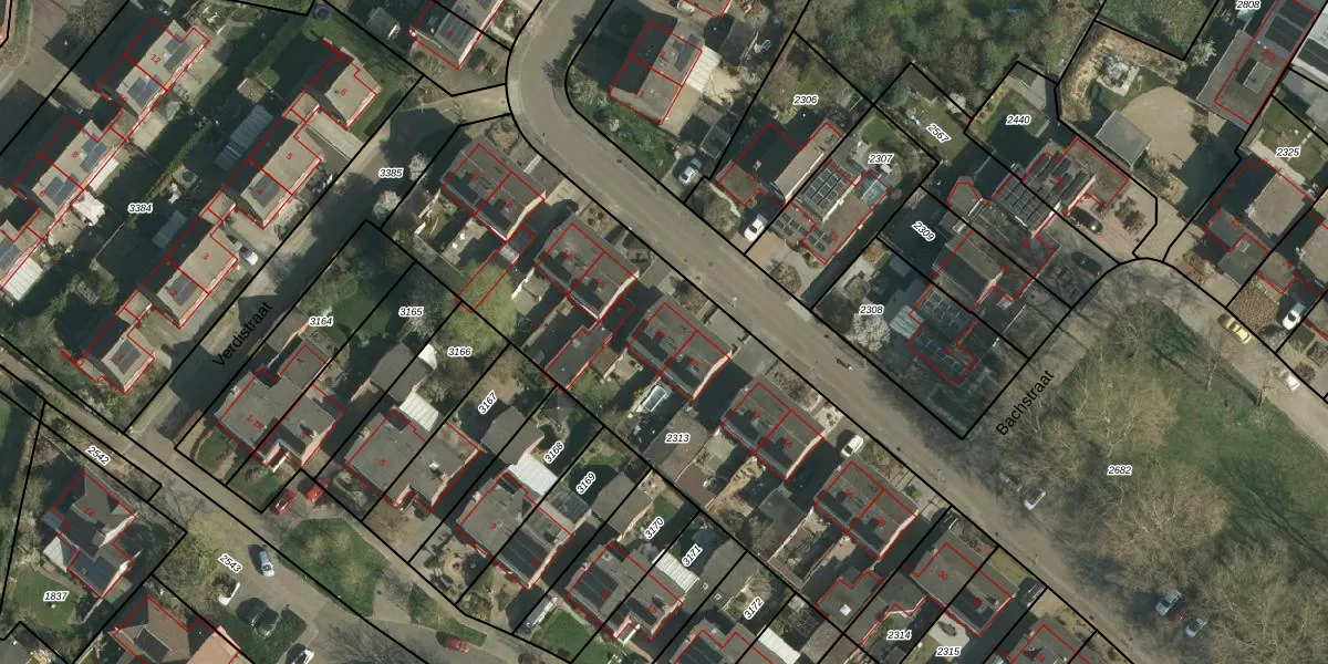 Het perceel waarop Bachstraat 18 staat heeft een oppervlakte van 2310 m². Dit is een zeer groot perceel. De perceeloppervlakte wordt geregistreerd door het Kadaster. Gedetailleerde informatie over de maten van dit perceel kunt u vinden in het rapport Kadastrale kaart met maatvoering van Bachstraat 18.