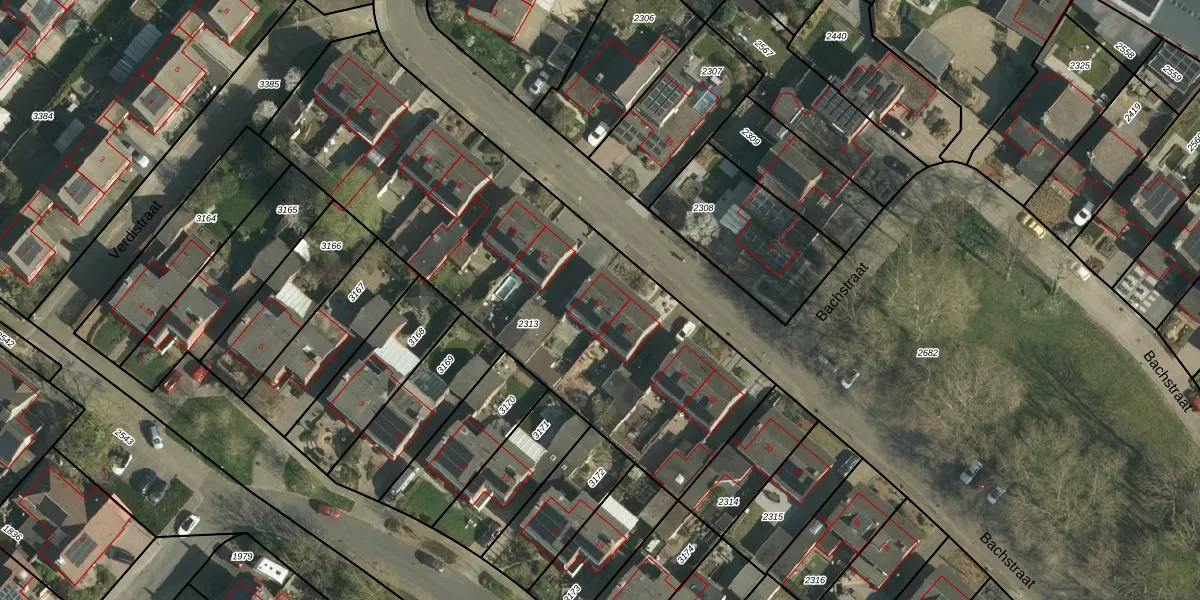 Het perceel waarop Bachstraat 22 staat heeft een oppervlakte van 2310 m². Dit is een zeer groot perceel. De perceeloppervlakte wordt geregistreerd door het Kadaster. Gedetailleerde informatie over de maten van dit perceel kunt u vinden in het rapport Kadastrale kaart met maatvoering van Bachstraat 22.