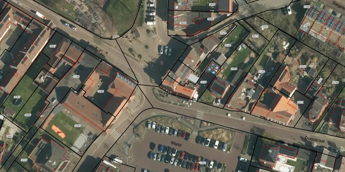 Dorpstraat 108 is gelegen op kadastraal perceel OBK00B3159. Deze kadastrale aanduiding is uniek en wordt gebruikt door het Kadaster om eigendomsrechten en andere zakelijke rechten vast te leggen. Het perceel maakt onderdeel uit van de kadastrale gemeente Oirsbeek.