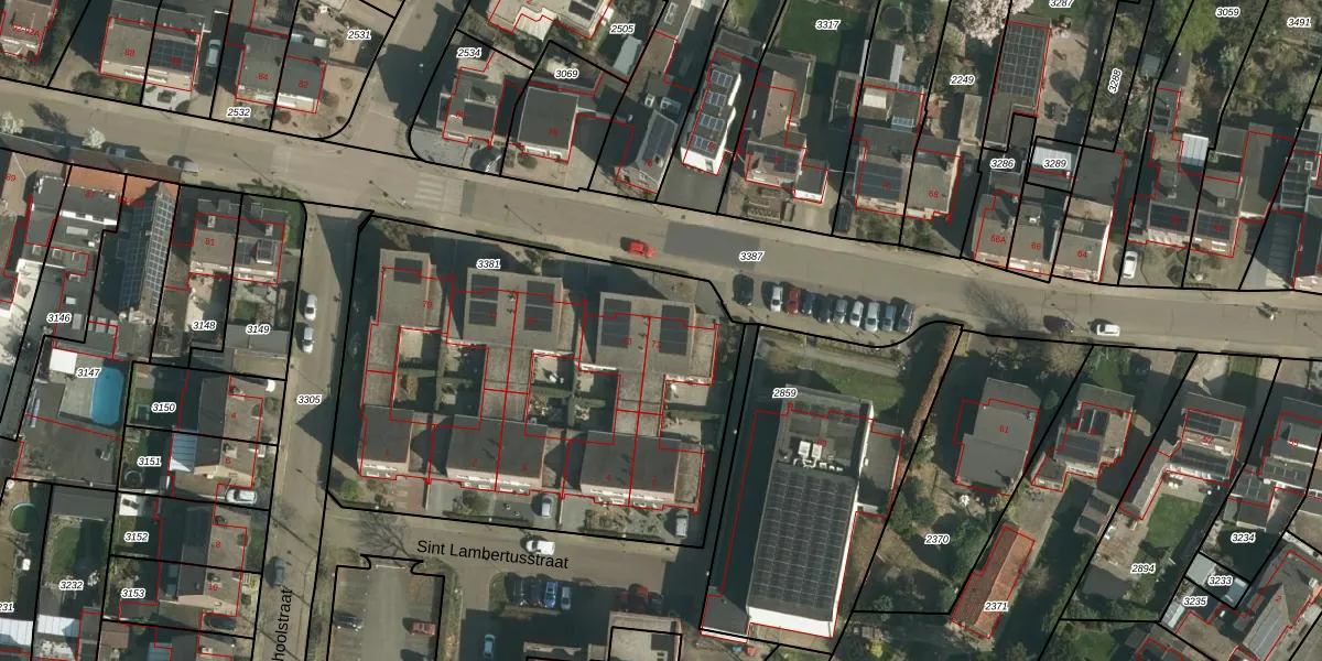 Dorpstraat 71 is gelegen op kadastraal perceel OBK00B3381. Deze kadastrale aanduiding is uniek en wordt gebruikt door het Kadaster om eigendomsrechten en andere zakelijke rechten vast te leggen. Het perceel maakt onderdeel uit van de kadastrale gemeente Oirsbeek.