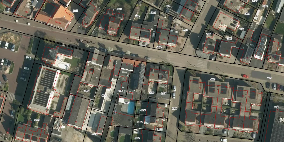 Dorpstraat 83 is gelegen op kadastraal perceel OBK00B3147. Deze kadastrale aanduiding is uniek en wordt gebruikt door het Kadaster om eigendomsrechten en andere zakelijke rechten vast te leggen. Het perceel maakt onderdeel uit van de kadastrale gemeente Oirsbeek.