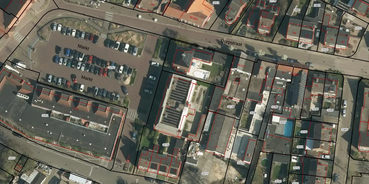 Het perceel waarop Markt 12 staat heeft een oppervlakte van 1640 m². Dit is een zeer groot perceel. De perceeloppervlakte wordt geregistreerd door het Kadaster. Gedetailleerde informatie over de maten van dit perceel kunt u vinden in het rapport Kadastrale kaart met maatvoering van Markt 12.