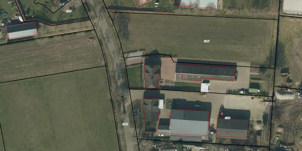 Het perceel waarop Bremsteeg 8-A staat heeft een oppervlakte van 1940 m². Dit is een zeer groot perceel. De perceeloppervlakte wordt geregistreerd door het Kadaster. Gedetailleerde informatie over de maten van dit perceel kunt u vinden in het rapport Kadastrale kaart met maatvoering van Bremsteeg 8-A.
