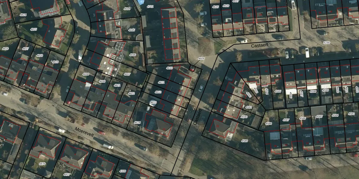 Het perceel waarop Castaert 38 staat heeft een oppervlakte van 155 m². Dit is een middelgroot perceel. De perceeloppervlakte wordt geregistreerd door het Kadaster. Gedetailleerde informatie over de maten van dit perceel kunt u vinden in het rapport Kadastrale kaart met maatvoering van Castaert 38.