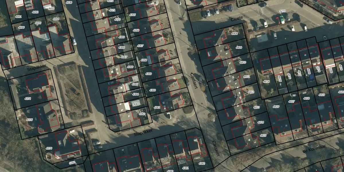Castaert 4 is gelegen op kadastraal perceel OST00D4360. Deze kadastrale aanduiding is uniek en wordt gebruikt door het Kadaster om eigendomsrechten en andere zakelijke rechten vast te leggen. Het perceel maakt onderdeel uit van de kadastrale gemeente Oirschot.