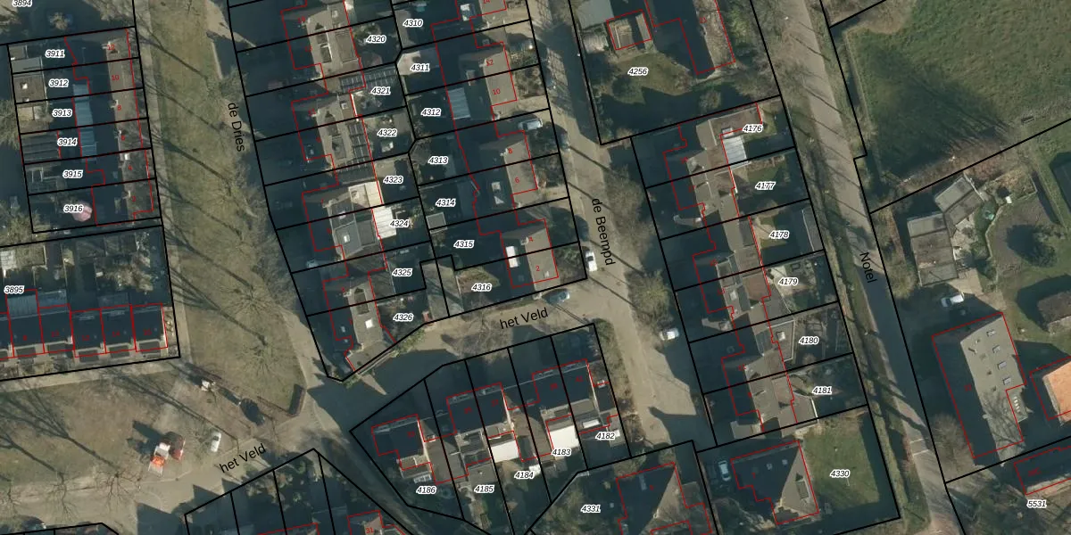 Gebruik de zoekbalk of klik op een perceel voor informatie over de adressen binnen dit perceel.