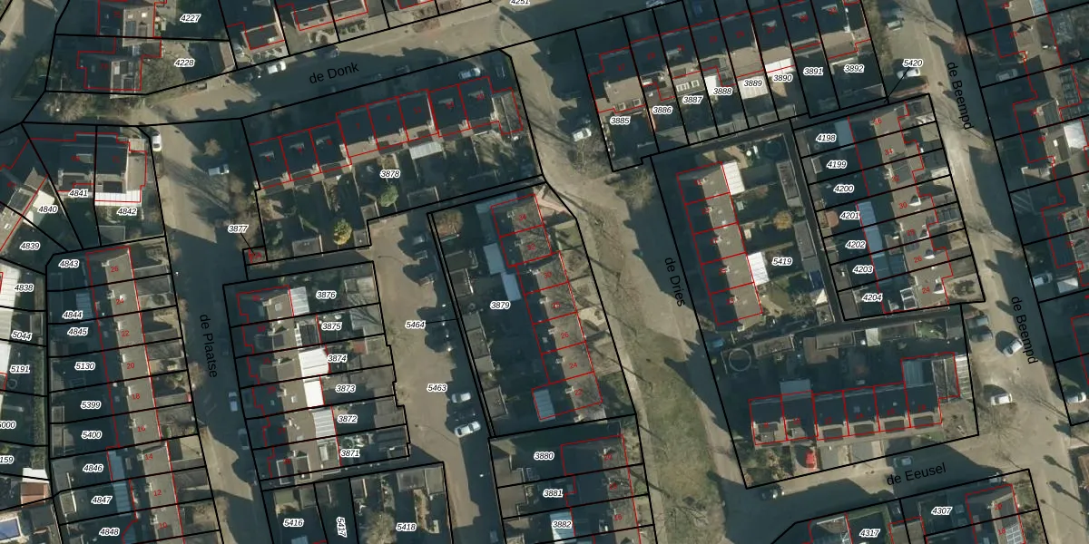 Het adres ligt op het perceel OST00-D-3879, dat zich in de kadastrale gemeente Oirschot bevindt. Het perceel is 1111 m² groot. Dat is kleiner dan de gemiddelde perceeloppervlakte in Oirschot, dat op 6553,43 m² ligt. Het grootste perceel in de kadastrale gemeente is 3,51 km². Het kleinste perceel heeft een oppervlakte van 0 m². Er zijn 7 adressen aanwezig op het perceel. In de Basisregistratie Kadaster (BRK) werden de grenzen van het perceel geregistreerd op 02-07-2012.