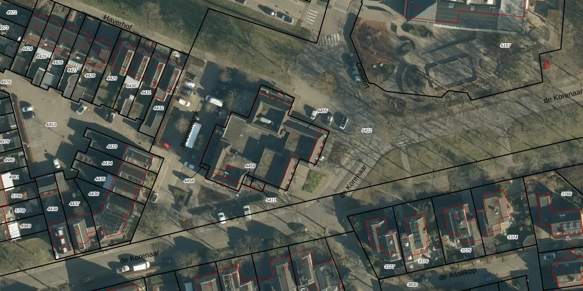 de Korenaar 32 is gelegen op kadastraal perceel OST00D4455. Deze kadastrale aanduiding is uniek en wordt gebruikt door het Kadaster om eigendomsrechten en andere zakelijke rechten vast te leggen. Het perceel maakt onderdeel uit van de kadastrale gemeente Oirschot.