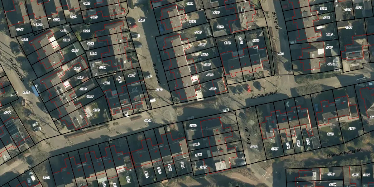 Gebruik de zoekbalk of klik op een perceel voor informatie over de adressen binnen dit perceel.