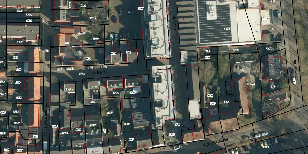 Het adres ligt op het perceel OST00-F-7556, dat zich in de kadastrale gemeente Oirschot bevindt. Het perceel is kleiner dan gemiddeld in Oirschot. Het perceel is 540 m² groot, terwijl het gemiddelde ligt op 6550,58 m². Het kleinste perceel in de kadastrale gemeente is 0 m² groot. De grootste perceeloppervlakte is 3,51 km². Op het perceel zijn 9 adressen aanwezig. De huidige grenzen van het perceel zijn digitaal in de Basisregistratie Kadaster (BRK) geregistreerd op 08-01-2009.