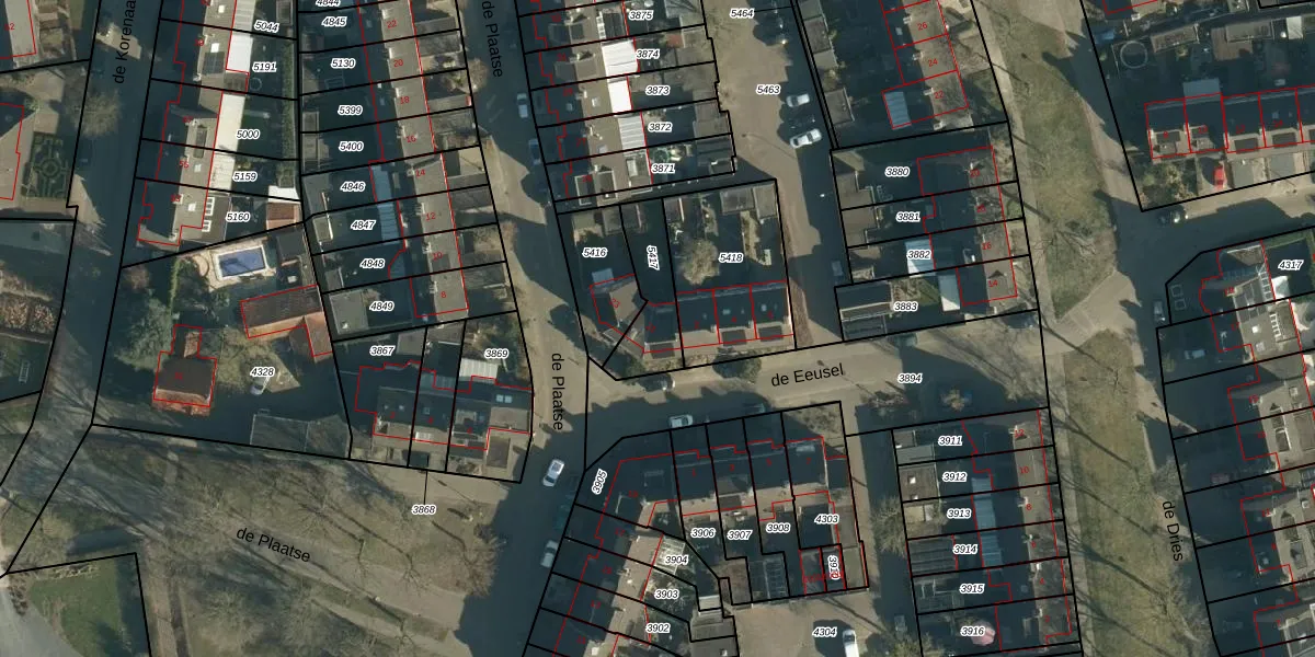 Gebruik de zoekbalk of klik op een perceel voor informatie over de adressen binnen dit perceel.
