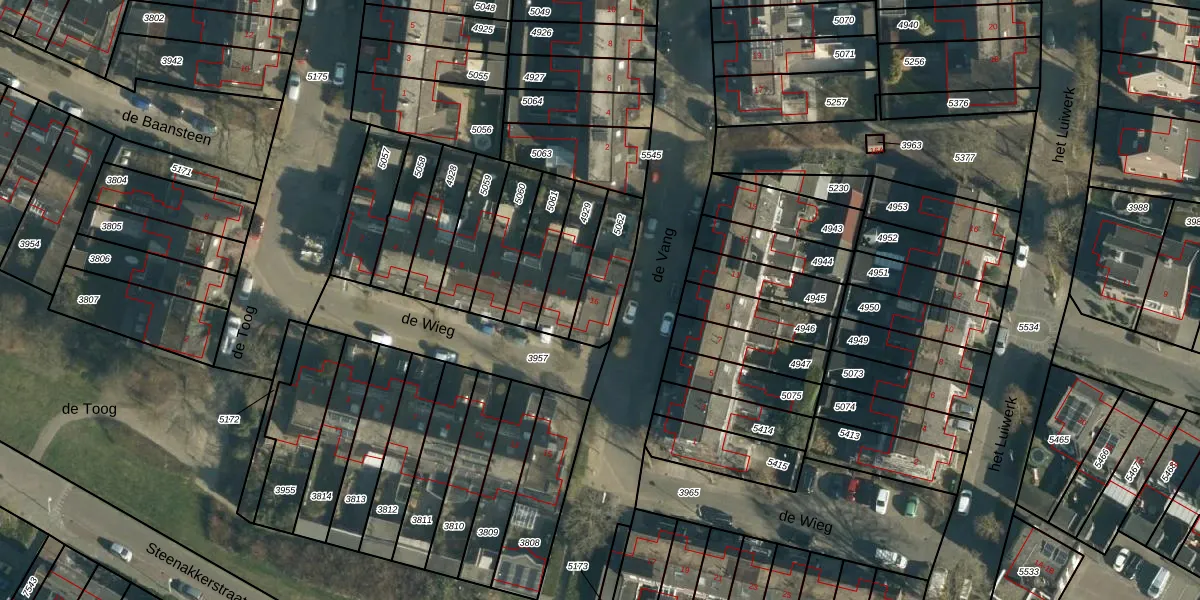 Gebruik de zoekbalk of klik op een perceel voor informatie over de adressen binnen dit perceel.