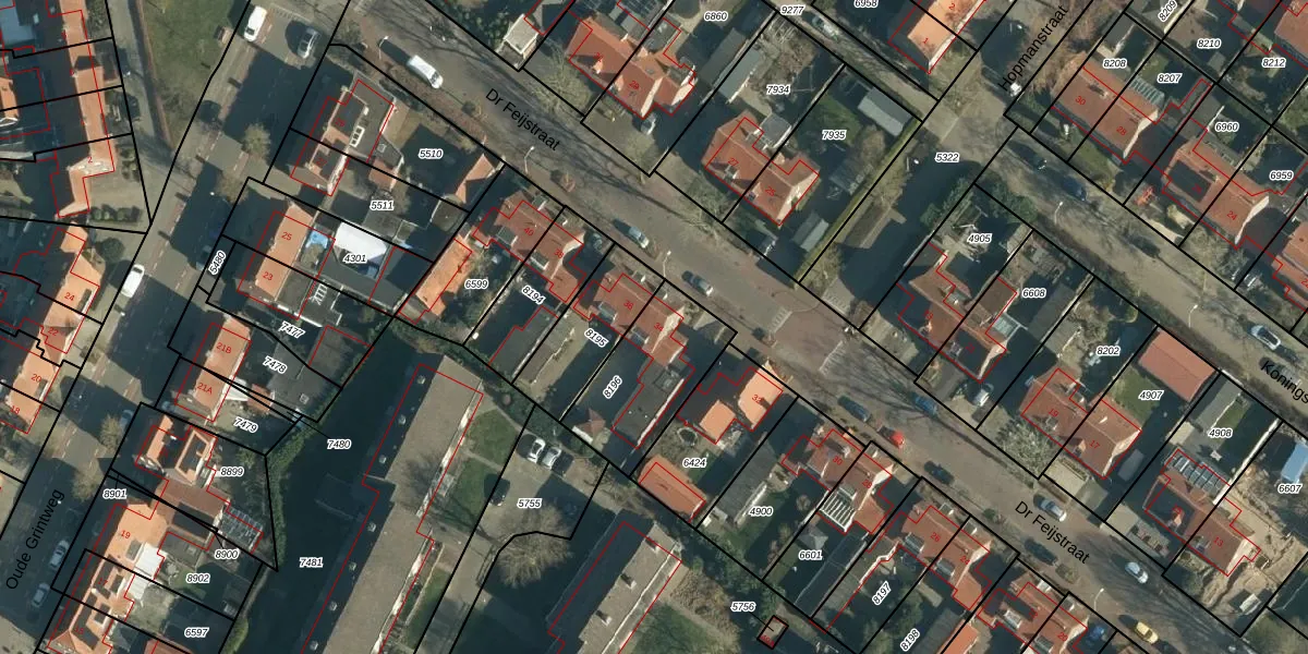 Het perceel waarop Dr Feijstraat 34 staat heeft een oppervlakte van 365 m². Dit is een groot perceel. De perceeloppervlakte wordt geregistreerd door het Kadaster. Gedetailleerde informatie over de maten van dit perceel kunt u vinden in het rapport Kadastrale kaart met maatvoering van Dr Feijstraat 34.