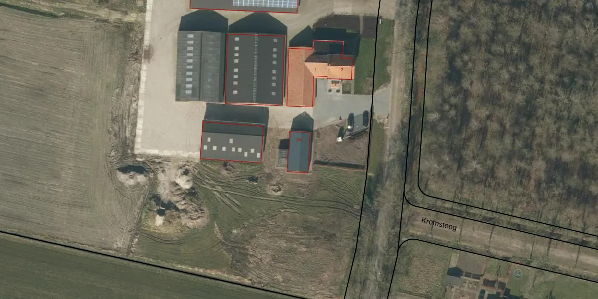 Het perceel waarop Heibloemdijk 2-A staat heeft een oppervlakte van 7,9 ha. Dit is een zeer groot perceel. De perceeloppervlakte wordt geregistreerd door het Kadaster. Gedetailleerde informatie over de maten van dit perceel kunt u vinden in het rapport Kadastrale kaart met maatvoering van Heibloemdijk 2-A.