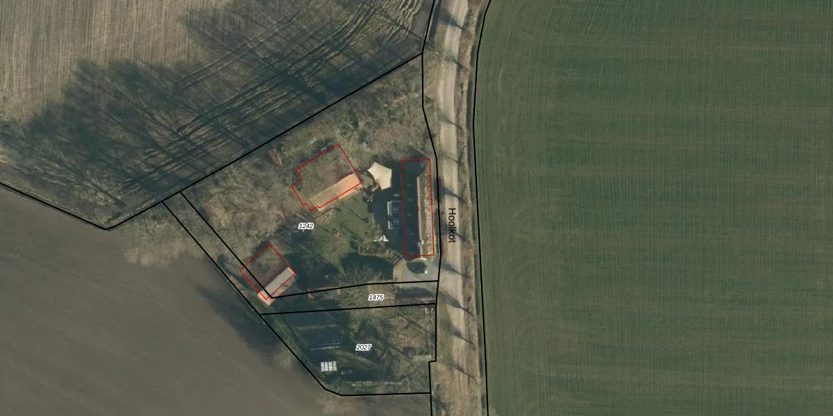 Het perceel waarop Hoolkot 5 staat heeft een oppervlakte van 2235 m². Dit is een zeer groot perceel. De perceeloppervlakte wordt geregistreerd door het Kadaster. Gedetailleerde informatie over de maten van dit perceel kunt u vinden in het rapport Kadastrale kaart met maatvoering van Hoolkot 5.