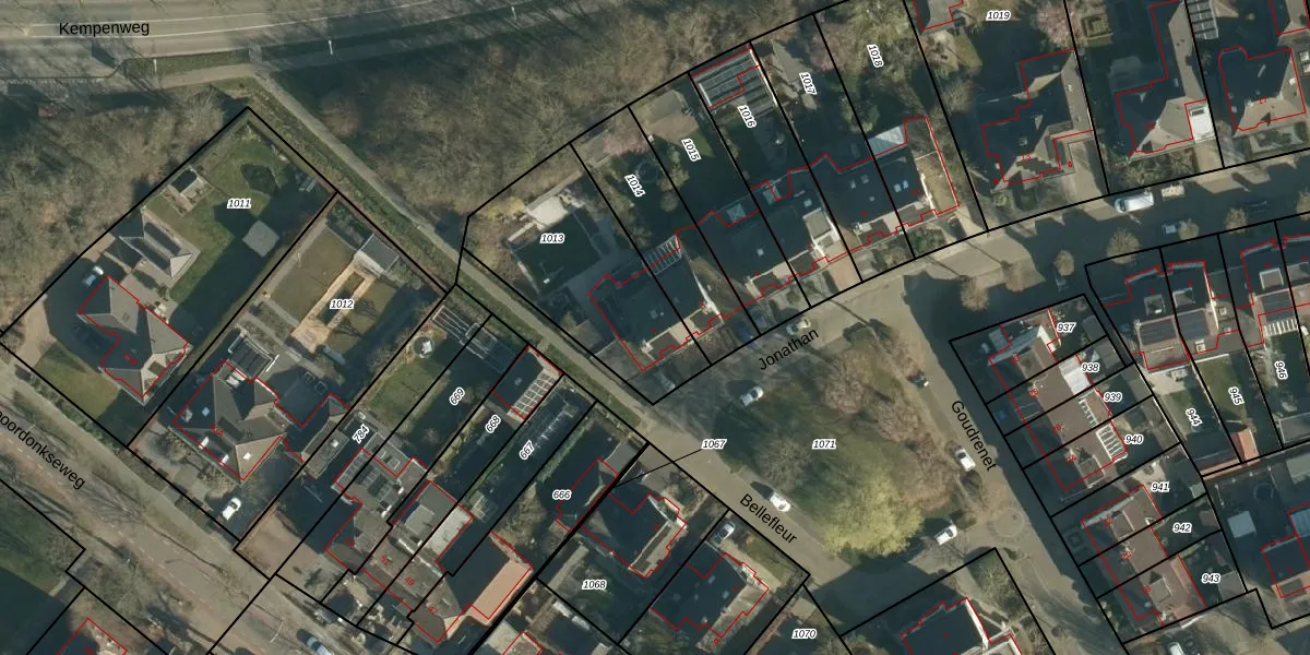 Het perceel waarop Jonathan 1 staat heeft een oppervlakte van 675 m². Dit is een groot perceel. De perceeloppervlakte wordt geregistreerd door het Kadaster. Gedetailleerde informatie over de maten van dit perceel kunt u vinden in het rapport Kadastrale kaart met maatvoering van Jonathan 1.