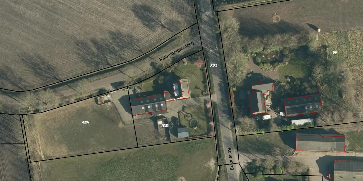 Het perceel waarop Kattenberg 3-B staat heeft een oppervlakte van 1805 m². Dit is een zeer groot perceel. De perceeloppervlakte wordt geregistreerd door het Kadaster. Gedetailleerde informatie over de maten van dit perceel kunt u vinden in het rapport Kadastrale kaart met maatvoering van Kattenberg 3-B.