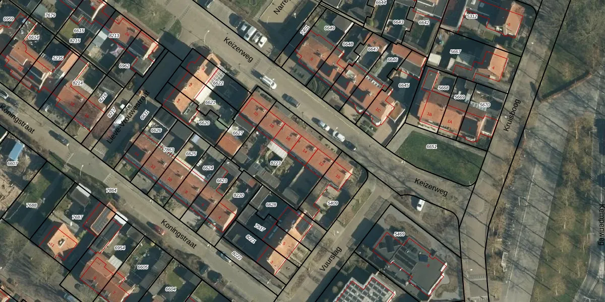 Het perceel waarop Keizerweg 14 staat heeft een oppervlakte van 682 m². Dit is een groot perceel. De perceeloppervlakte wordt geregistreerd door het Kadaster. Gedetailleerde informatie over de maten van dit perceel kunt u vinden in het rapport Kadastrale kaart met maatvoering van Keizerweg 14.