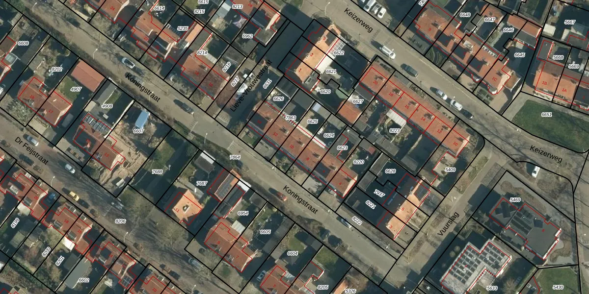 Koningstraat 10 is gelegen op kadastraal perceel OST00F6625. Deze kadastrale aanduiding is uniek en wordt gebruikt door het Kadaster om eigendomsrechten en andere zakelijke rechten vast te leggen. Het perceel maakt onderdeel uit van de kadastrale gemeente Oirschot.
