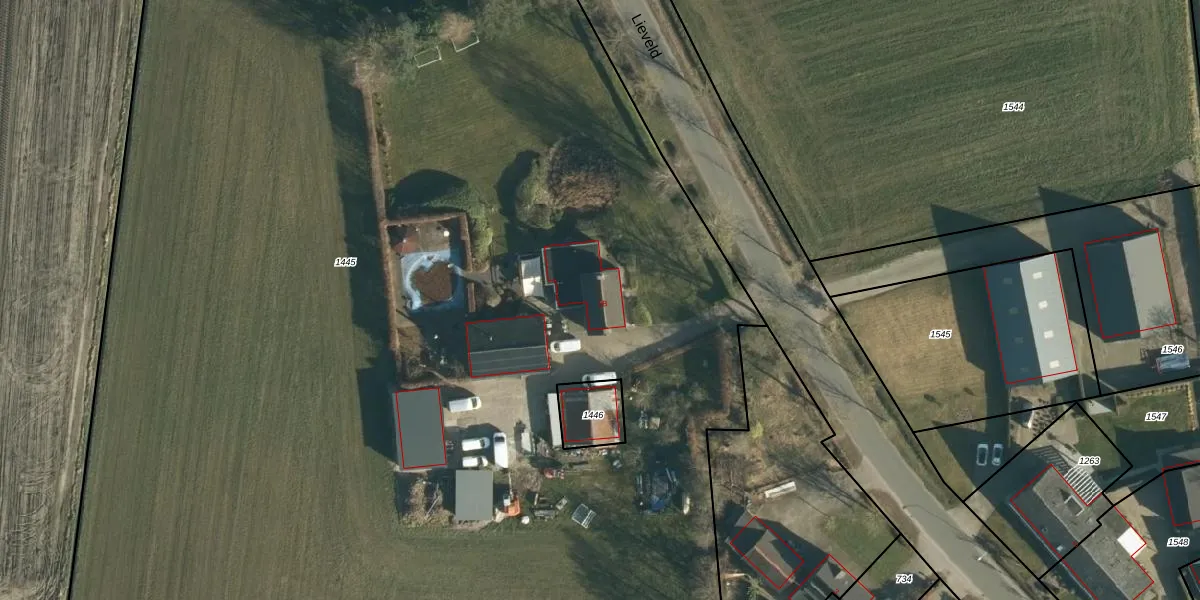 Het perceel waarop Lieveld 2-B staat heeft een oppervlakte van 1,9 ha. Dit is een zeer groot perceel. De perceeloppervlakte wordt geregistreerd door het Kadaster. Gedetailleerde informatie over de maten van dit perceel kunt u vinden in het rapport Kadastrale kaart met maatvoering van Lieveld 2-B.
