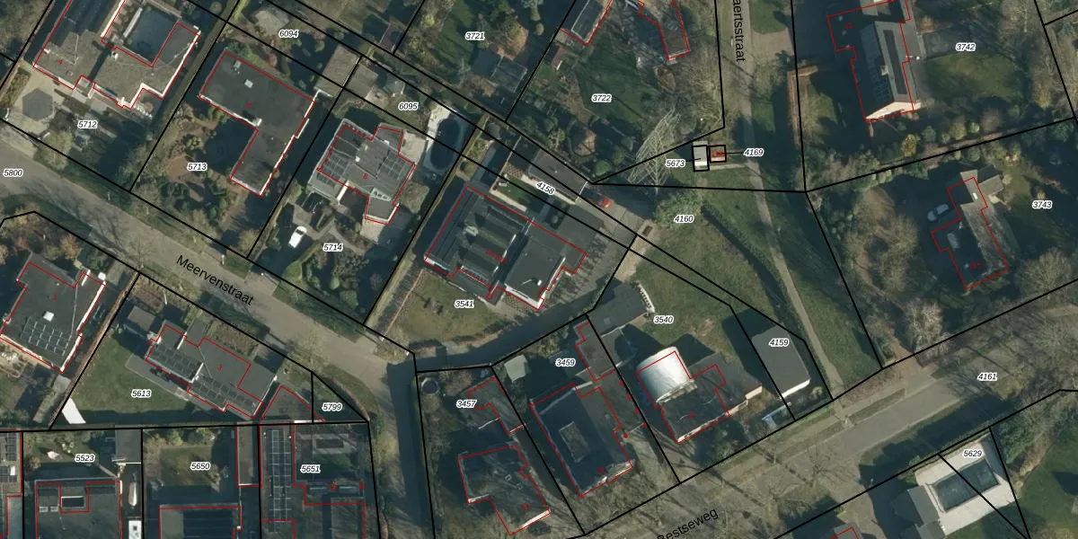 Meervenstraat 10 is gelegen op kadastraal perceel OST00D3541. Deze kadastrale aanduiding is uniek en wordt gebruikt door het Kadaster om eigendomsrechten en andere zakelijke rechten vast te leggen. Het perceel maakt onderdeel uit van de kadastrale gemeente Oirschot.