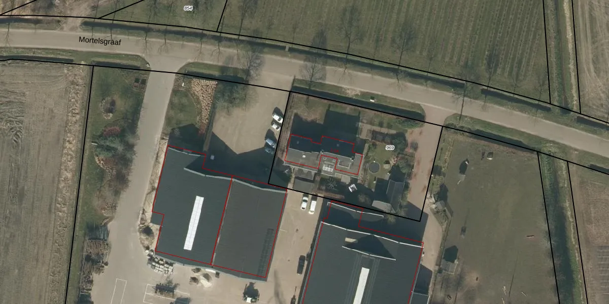 Het perceel waarop Mortelsgraaf 1-A staat heeft een oppervlakte van 1645 m². Dit is een zeer groot perceel. De perceeloppervlakte wordt geregistreerd door het Kadaster. Gedetailleerde informatie over de maten van dit perceel kunt u vinden in het rapport Kadastrale kaart met maatvoering van Mortelsgraaf 1-A.