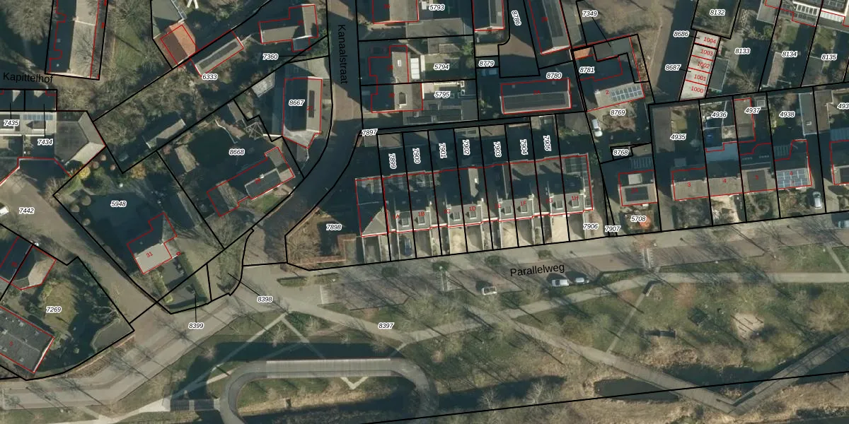 Parallelweg 1-B is gelegen op kadastraal perceel OST00F7900. Deze kadastrale aanduiding is uniek en wordt gebruikt door het Kadaster om eigendomsrechten en andere zakelijke rechten vast te leggen. Het perceel maakt onderdeel uit van de kadastrale gemeente Oirschot.
