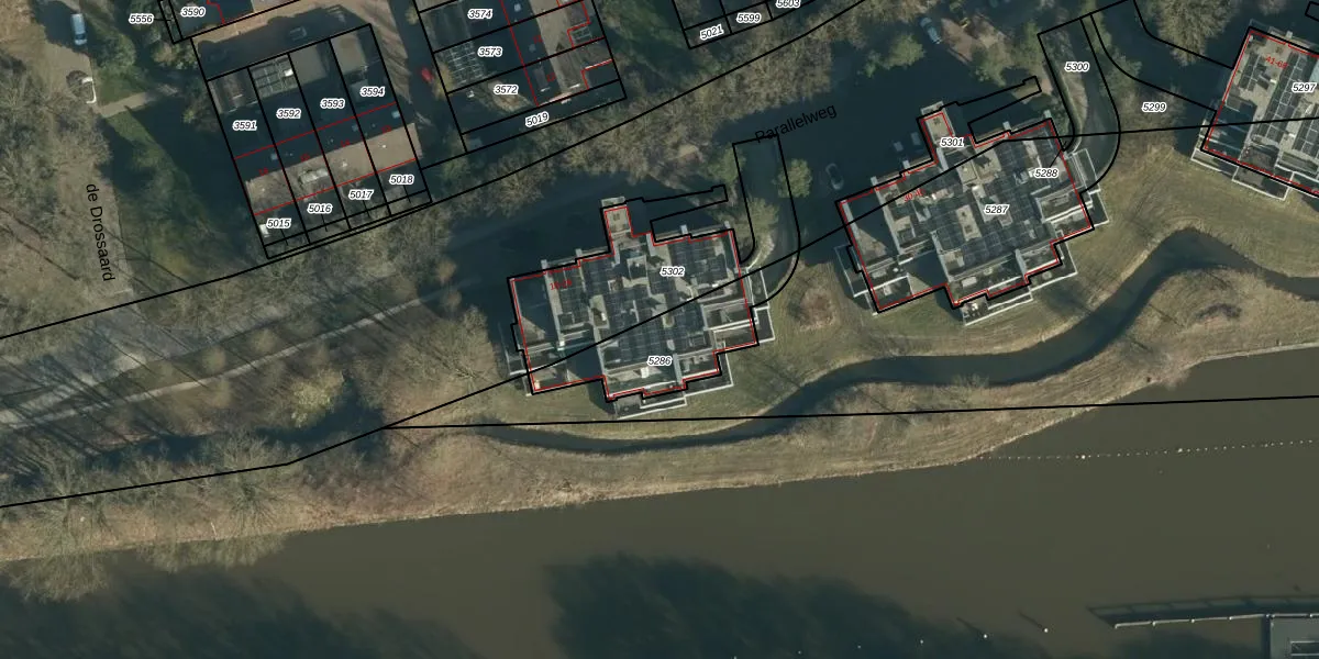 Het perceel waarop Parallelweg 26 staat heeft een oppervlakte van 338 m². Dit is een groot perceel. De perceeloppervlakte wordt geregistreerd door het Kadaster. Gedetailleerde informatie over de maten van dit perceel kunt u vinden in het rapport Kadastrale kaart met maatvoering van Parallelweg 26.
