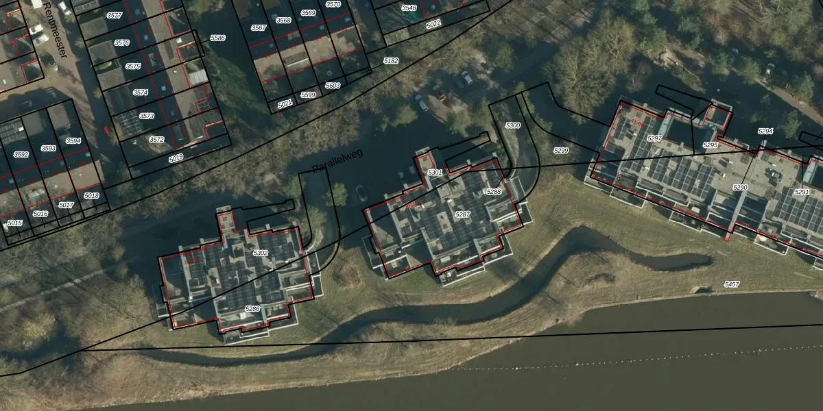Parallelweg 30 is gelegen op kadastraal perceel OST00D5287. Deze kadastrale aanduiding is uniek en wordt gebruikt door het Kadaster om eigendomsrechten en andere zakelijke rechten vast te leggen. Het perceel maakt onderdeel uit van de kadastrale gemeente Oirschot.